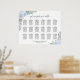 This wedding seating chart boasts a beautiful rustic boho chic design, with room for 180 guests seated at 18 tables. The chart features hand-painted watercolor roses, blossoms, and flowers in shades of dusty blue, interspersed with sprigs of sage green eucalyptus leaves and garden foliage. The title, "Welcome! Please find your table" is written in elegant lacy script calligraphy, adding to the overall elegance of the design. There is also space provided for the couple's names and the wedding date, making it not only a functional guide for guests but also a decorative element of the reception. It is a wonderful way to enhance the beauty and style of the wedding reception while making it easy for guests to find their tables.