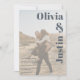A modern, simple bold and elegant wedding invitation with bold oversize font in boho dusty blue and white, with a white overlay and 2 photos, add your QR code for rsvp , wedding details and more. All the text, names and background colours are customizable. A simple and minimalist invitation.