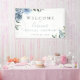 Beautiful watercolor botanical flowers and foliage in trendy shades of dusty blue and green, personalized banner. Text font style, colour and size, can be customized. Designed to match our Dusty Blue Botanical Collection.