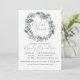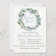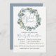 Pretty watercolor floral wreath in trendy shades of dusty blue and botanical foliage with solid dusty blue colour backing, bridal shower invitation. Personalize text font style, colour, and size. Background colour can be customized as well.