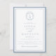 Dusty blue botanical crest monogram wedding invitation