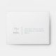 Dusty blue botanical floral accent on back flap, modern return address in dusty blue text on front. Envelope size A2: Note Card is well suited for the RSVP card.
