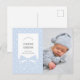 Dusty Blue Bow Baby Boy Photo Birth Announcement Postcard