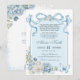 Dusty Blue Bow Coquette Butterfly Silver Quinceanera Invitation, Floral Rose Sweet 16th Invite, Editable Mis Quince XV Años