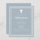 Dusty blue background, decorated with a white frame, and a white cross  Personalize and add the name and details. White text.