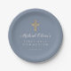 Dusty Blue Boy Religious Cross First Communion Paper Plate