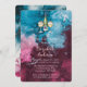 This exquisite wedding invitation showcases a harmonious blend of dusty blue, burgundy, and pink hues in a captivating watercolor alcohol ink design. The swirling patterns create a gradient effect, seamlessly transitioning from soft dusty blue at the top to deep burgundy at the bottom, interspersed with delicate white streaks. The marbled texture provides a luxurious and artistic canvas for your wedding details, setting the tone for an unforgettable event.