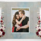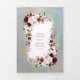 Modern, elegant and trendy, this gorgeous photo wedding Tri-Fold Invitation design features carefully digitized hand painted burgundy and blush pink floral arrangements, with text in a matching burgundy colour, over a dusty blue watercolor background. Your message of thanks is personalized inside, and the top inside flap allows you to add your favourite wedding photo. Part of a matching wedding set. Copyright Elegant Invites. All rights reserved.