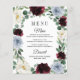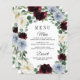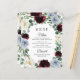 Dusty Blue Burgundy Boho Fall Wedding Menu Cards - feature an elegant eucalyptus and greenery wreath decorated with ivory/white, dusty blue/slate/steel and burgundy/cranberry flowers. View the matching collection on this page to find coordinating products.
