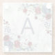 Dusty Blue Burgundy Floral Marble Name Monogram Glass Coaster
