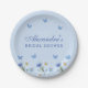 Dusty Blue Butterfly Wildflower Bridal Shower Paper Plate