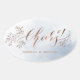 Dusty blue calligraphy cheers rustic floral oval sticker