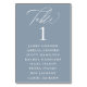 Dusty Blue Calligraphy Seating Chart Table Number
