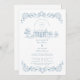 An elegant minimalist wedding design featuring refined baroque line art in soft dusty blue tones. The symmetrical ornamental frame and airy white background create a timeless, European-inspired look that feels both classic and modern. Ideal for couples who love understated luxury, fine detailing, and a calm, sophisticated aesthetic.