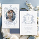 Dusty Blue Classic Floral Frame Wedding Photo Thank You Card