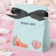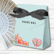 Celebrate love and colour with this personalized Mexican wedding favour box, perfect for a fiesta wedding full of joy and vibrant details. This design features colourful pink and orange flowers, festive bunting, and floral patterned maracas, all beautifully arranged against a soft, dusty blue background. A chic black ribbon bow adds the perfect finishing touch. Whether you're planning a traditional or modern Spanish celebration, this charming thank you favour box brings festive flair and elegance to your special day.
