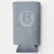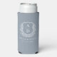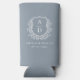 Dusty Blue Crest Botanical Monogram Wedding Seltzer Can Cooler