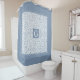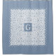 White and dusty blue damask pattern and monogram shower curtain. There are dusty blue bands with scalloped edges around it while in the centre there is your monogram. You can personalize it with your name.