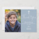 Dusty Blue Elegant Photo First Holy Communion Thank You Card