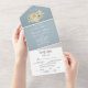 Dusty Blue, elegant, rustic, modern folded marriage, Wedding all in one invitations. Trifold, budget set. You can personalized it with your own details.