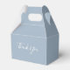 Elegant wedding favor box featuring chic signature script names and special date on a dusty blue background. You can personalize with your own thank you message on the reverse. A perfect way to say thank you to your guests! Designed by Thisisnotme©