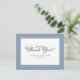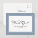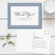 This dusty blue wedding thank you postcard features a chic double border with a petite white inner frame and elegant charcoal grey calligraphy. Personalize your names, wedding date, and message using the simple template fields. The modern date format adds a stylish touch, and the back includes space for a handwritten note your guests will appreciate. A timeless, minimalist design perfect for weddings, bridal celebrations, and post‑event thank yous.