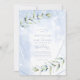 Beautiful dusty blue watercolor background, with just a touch of eucalyptus foliage, and your wedding details in lovely fonts...result in a gorgeous invitation your guests will be delighted to receive and respond to.