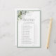 Modern, elegant bridal shower game "Guess Who" featuring lush grey green botanical leaves and eucalyptus, and bordered in pale eucalyptus blue grey green. Personalize your questions in soft off-black, accented with beautiful modern hand lettered calligraphy. Part of a co-ordinated suite. View suite here: https://www.zazzle.com/collections/elegant_eucalyptus_green_botanical_bridal_shower-119330045467288535 Contact designer for matching products. Copyright Anastasia Surridge for Elegant Invites, all rights reserved.
