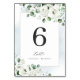 Modern chic watercolor white floral eucalyptus greenery and gold colour border frame on dusty blue background, with trendy table script, elegant and stylish, great wedding table number cards for rustic wedding, botanical wedding and beach wedding.
