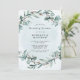 Design features a printed coloured foliage element in shades of light green and dusty blue. Blue green watercolor canvas textures with calligraphy script or type writing. Great for your wedding celebrations!