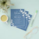 A modern, elegant, wedding program, timeline. Dusty blue background, decorated with eucalyptus, sprigs. Personalize and add your names and wedding details. If you have more text it's possible to reduce the line space and also add text on the back.