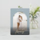 Dusty Blue Grey Finally Getting Married & Window Photo with Marble Look back Side. These Save the Date Cards are elegant trendy and soo chic, with dark fading ombre gradient overlay to highlight your text, and gold handwriting script font with tails. Personalize it with your photograph. Shown in faux gold foil lettering. - Wedding Save the Date custom photo cards!