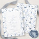 The design features a hand-painted watercolor floral border in soft blue tones and elegant script typography.