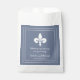 Elegant and simple Wedding favour bag featuring a fleur de lis against a dusty blue background. This design is a unique choice for a modern wedding. Easy to customize with your wedding details. Click "Customize It" to find more personalization options.