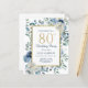 Dusty Blue Floral 80th Birthday Budget Invitation