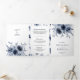 Dusty Blue Floral All in One QR Code Wedding Tri-Fold Invitation