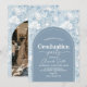Celebrate your achievement with this elegant "Dusty Blue Floral" graduation party invitation. Featuring a stunning vintage botanical pattern of peonies and a sophisticated arched frame for your event details. This toile-inspired design is perfect for a high school or college graduate seeking a classic and refined aesthetic. Easily personalize with your name and party info for a memorable celebration.