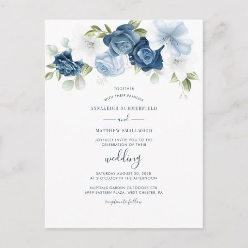 Dusty Blue Floral Bloom Wedding Invitation SuiteDesigned by S A Holmes