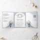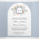 Dusty Blue Floral Boho Pampas QR Code Wedding Tri-Fold Invitation