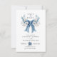 Announce your upcoming celebration with this stunning dusty blue floral save the date card! The design features a luxurious hand-painted blue ribbon bow accented by soft white roses, delicate blooms, and fresh eucalyptus greenery, set against a subtle trellis pattern in soft blues for a romantic, timeless feel. Centered text boldly declares "SAVE the DATE" with your names ("SAMANTHA ANDERSEN & MADRONE WILLIAM"), wedding date (Wednesday, August 26, 2022), location (Anywhere City, CA), and a note that a formal invitation will follow. Fully customizable—perfect for mailing early to guests, building excitement, and matching your full dusty blue suite. Ideal for classic, boho, or elegant weddings!
