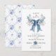 Dusty Blue Floral Bow Save the Date Wedding Card
