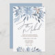 Dusty Blue Floral Chic Script Winter Theme Wedding Invitation