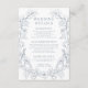 Immerse yourself in modern sophistication with this details card designed for romantic bohemian weddings. Featuring a delicate pattern of dusty blue floral wreath, this card offers customization options to personalize your experience. Add the names of the bride and groom on the back for a distinctive touch, elevating the overall contemporary elegance of your wedding celebration.