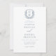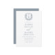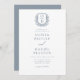 Dusty Blue Floral Crest Monogram Wedding QR Code Invitation