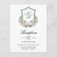 This beautiful monogrammed dusty blue crest wedding reception card is perfect for your wedding! The blue larkspur, blush pink and white roses, lilies of the valley and wispy greenery are elegant and romantic. Enclose one with every invitation so guests know the time and location of your reception. It is so easy to make this card your own. Simply select Personalize this template and type in your information. In seconds you can see your unique wedding reception cards.