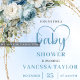 Dusty Blue Floral Eucalyptus Gold Script Baby Show Invitation