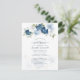 Customize this bridal shower budget invitation card by clicking the "Personalize" button above. The card features a modern elegant chic dusty blue flowers with white, light blue, and olive green bloom.