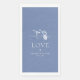 Add a touch of elegance to your wedding table setting with these personalized guest towels featuring the word “Love” in graceful script and the names of the couple beneath. Adorned with soft dusty blue florals, they’re the perfect blend of romance and sophistication. Ideal for weddings, rehearsal dinners, bridal showers, or engagement parties. These disposable towels elevate your event with thoughtful style and are a beautiful detail guests will notice and appreciate.