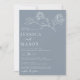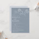 Elegant modern minimalist script dusty blue with floral magnolia wedding invitation.