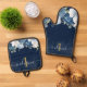 Modern dusty blue floral monogram script handwritten personalized Oven Mitt & Pot Holder Set. Elevate your kitchen style with our bloom Oven Mitts & Pot Holders, a perfect blend of modern design and practicality. Make cooking and baking a delightful experience with these mitts and pot holders. Ideal for adding a personalized flair to your kitchen or as a thoughtful gift for loved ones, our cute oven mitts & pot Holders are a must-have for every home chef.